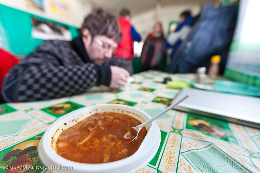 У стойки в "Кубе" бывает многолюдно. Дальнобойщики, пассажиры маршруток, измученные многочасовой дорогой (от Усть-Неры до Якутска - сутки езды), прочие путешествующие по разным личным и казённым надобностям.